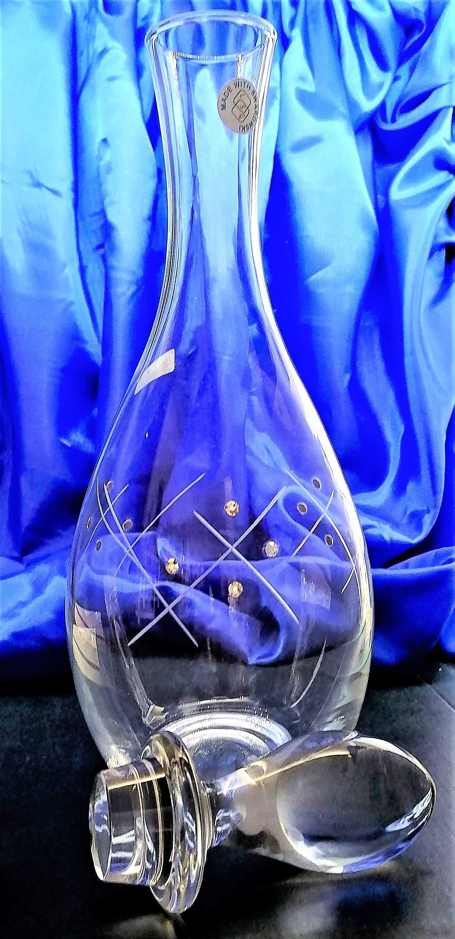 Křišťálové sklo se zabroušenou zátkou dekor Karla Swarovski.