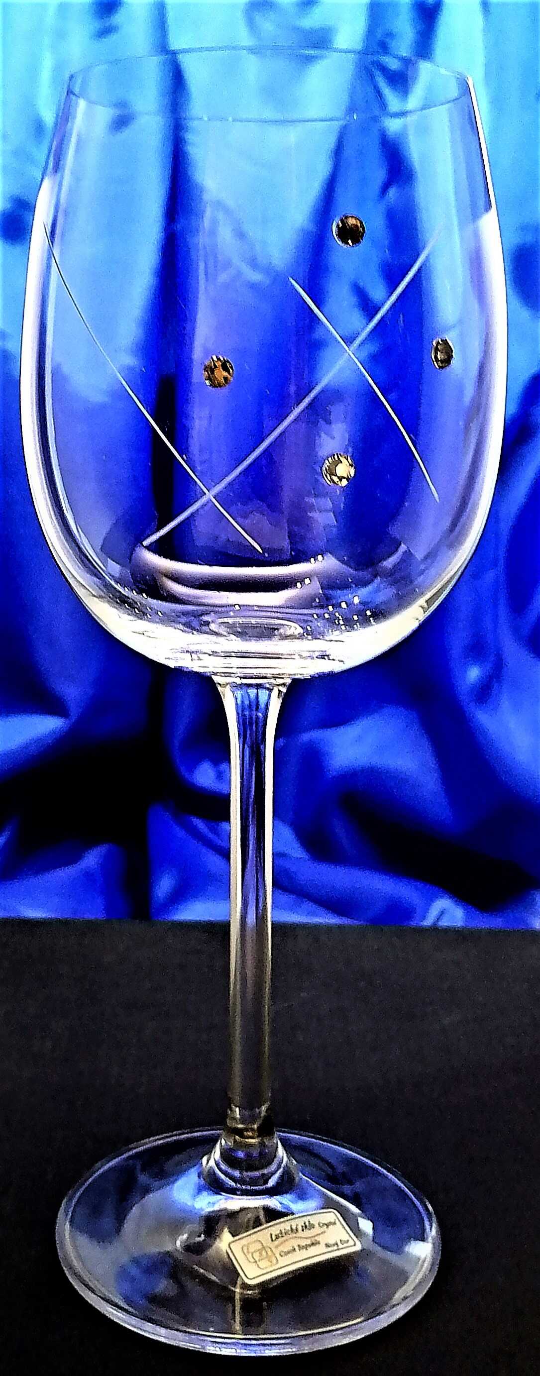LsG-Crystal Skleničky na bílé červené víno 24 x Swarovski krystal ručně ryté broušené dekor Karla dárkové balení satén Erika-P9048 350 ml 6 Ks.