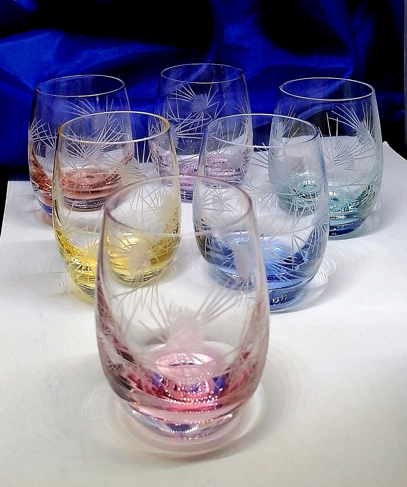 Sada různobarevných skleniček s dekorem Bodlák
